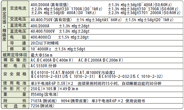 日本共立 KEW 2009R 交/直流鉗形表 相關參數: