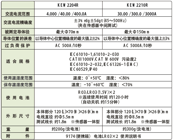 日本共立 KEW 2210R/2204R柔性鉗形電流表 相關參數: