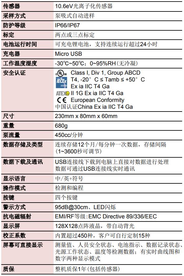 美國MPOWER PPB18X 手持式VOC檢測儀產品技術參數:
