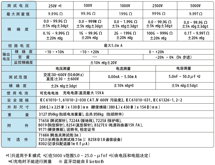 寬廣測(cè)試范圍:250, 500,1000,2500,5000V